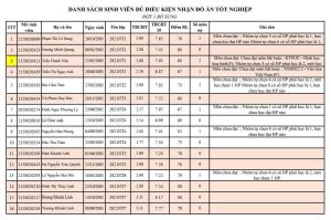 Thông báo danh sách dự kiến Sinh viên được nhận ĐATN đợt 1 bổ sung
